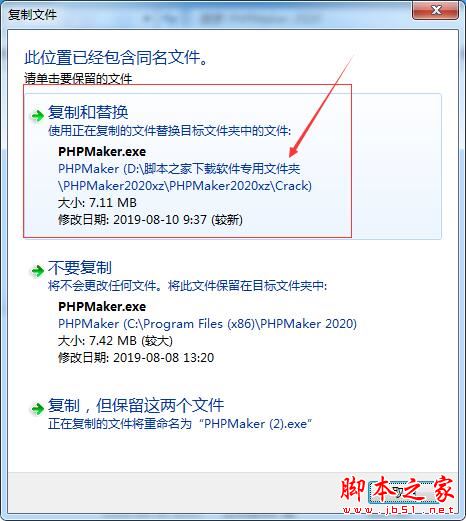 7、将软件包里Crack文件夹里的补丁复制粘贴到软件安装目录里(默认位置:C:\Program Files (x86)\PHPMaker 2020)