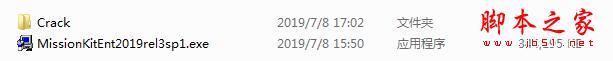 1、在本站下载并解压,如图所示,得到MissionKitEnt2019rel3sp1.exe安装程序和crack破解文件夹