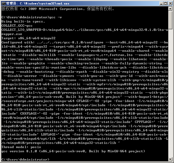 在cmd窗口使用 gcc -v去查看下。