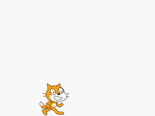 5、当小猫运动到舞台右边边缘处时,通过给小猫的x坐标赋值,让它迅速回到舞台左下角。