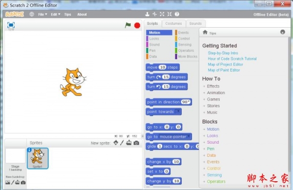 1、打开scratch2.0,进入它的主界面;