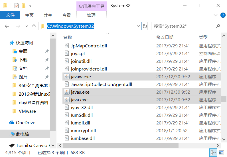 找到C:\Windows\System32目录下javaw.ex、javas.exe、java.exe,删除。