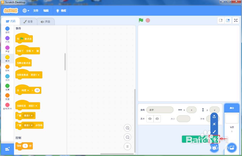 1、打开scratch3.0,将小猫删除;