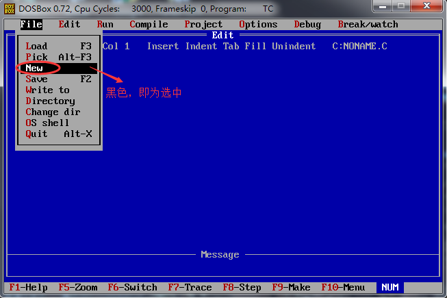 1) 新建源文件打开 Turbo C,你看到的是 Turbo C 的初始操作界面,如下图所示: