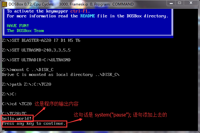 本节我们来看看如何通过 Turbo C 来运行这段代码。