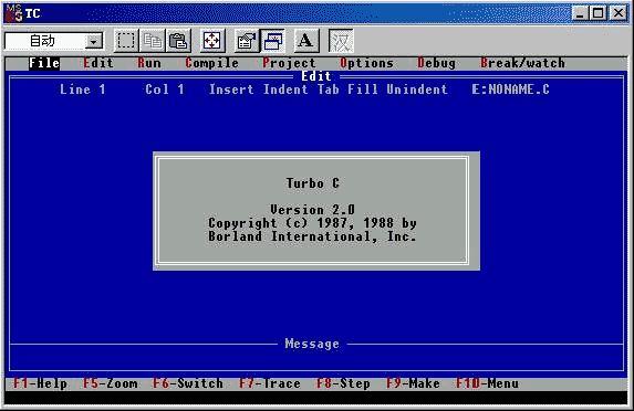 假设Turbo C 2.0安装在C盘根目录下的TC子目录中,要启动Turbo C,只要先启动DOS,如果需要使用汉字,则再启动汉字DOS(但在大多数汉字DOS下,Turbo C不直接支持使用汉字,在UCDOS或天汇DOS下,Turbo C可直接处理汉字,这给用户带来方便),然后可以按下面两种方式进入Turbo C集成环境: