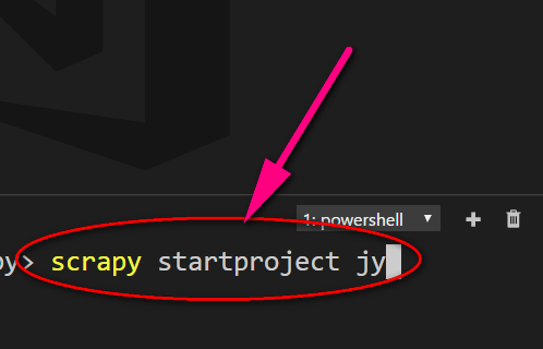 2、然后使用命令创建scrapy项目,当然,你要先搭建好scrapy框架,这样才可以使用scrapy命令哦,jy可变,代表scrapy项目名称。