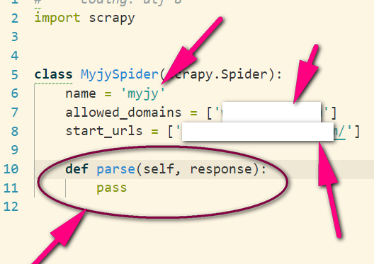 9、如图,里面有自动生成的内容,name不要改,parse函数也不要改,不然报错。在parse里面写解析规则即可。