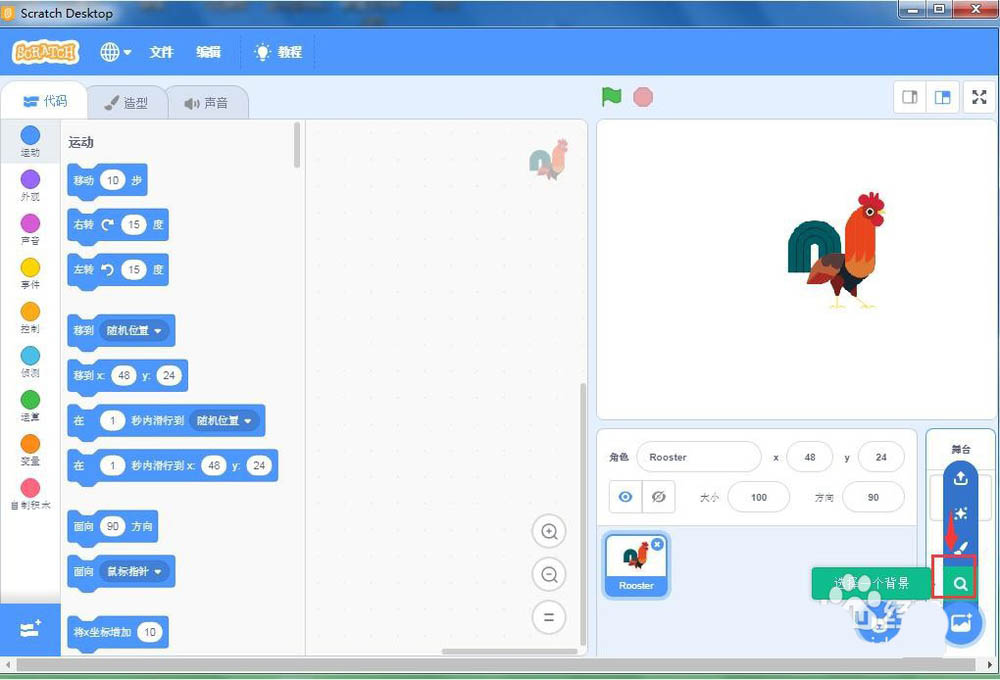 在scratch3.0中,我们可以根据程序设计的需要创建各种不同场景,需要一个森林中的大公鸡背景图,该怎么创建呢?下面我们就来看看详细的教程。