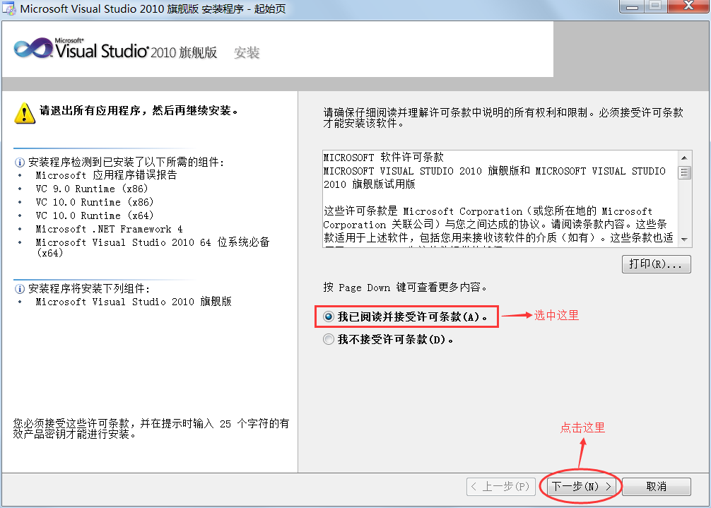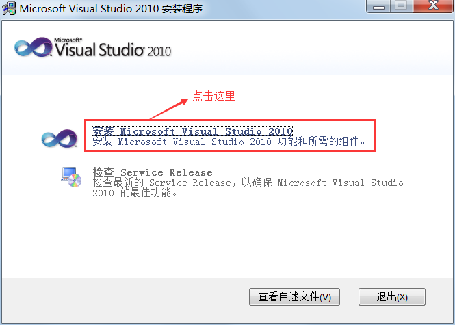 选择“安装 Microsoft Visual Studio 2010”,继续安装。