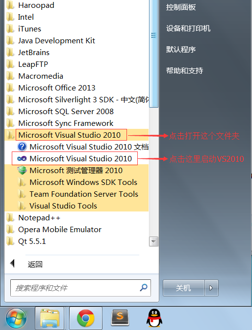 9) 打开“开始菜单”,发现多了一个叫“Microsoft Visual Studio 2010”的文件夹,就证明安装成功了。