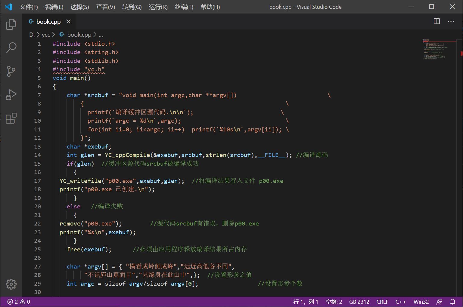 步骤五、关闭Visual Studio Code 1.44,然后重新运行,中文代码显示正常啦: