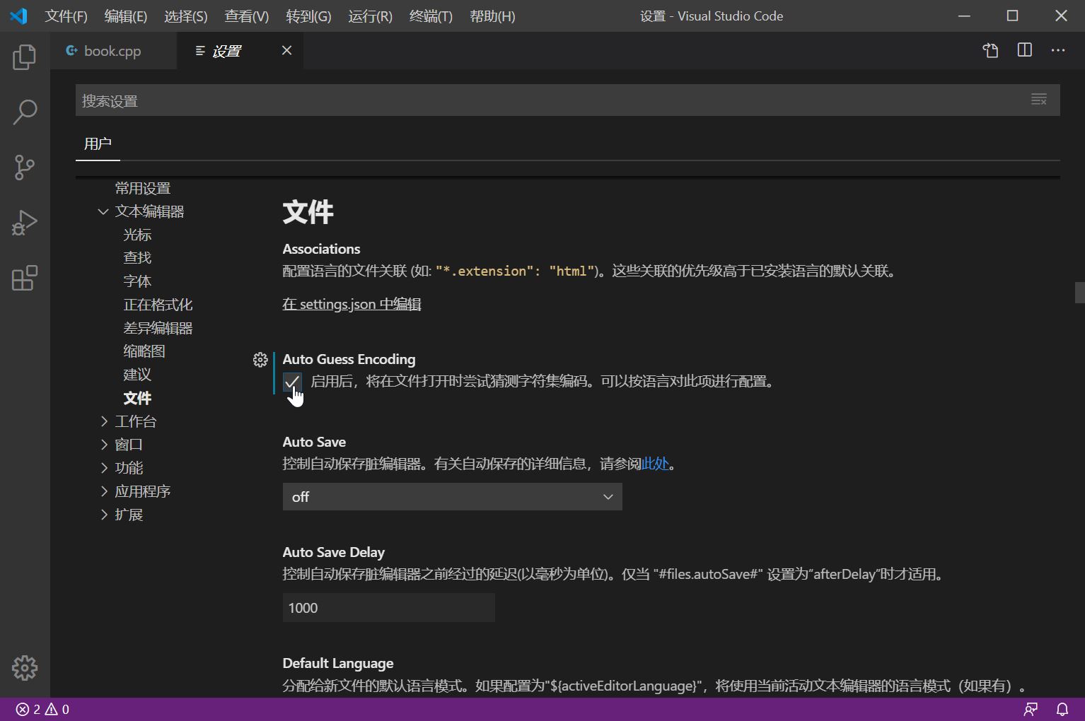 步骤四、勾选右侧界面中的“启用后,将在文件打开时尝试猜测字符集编码。可以按语言对此项设置”