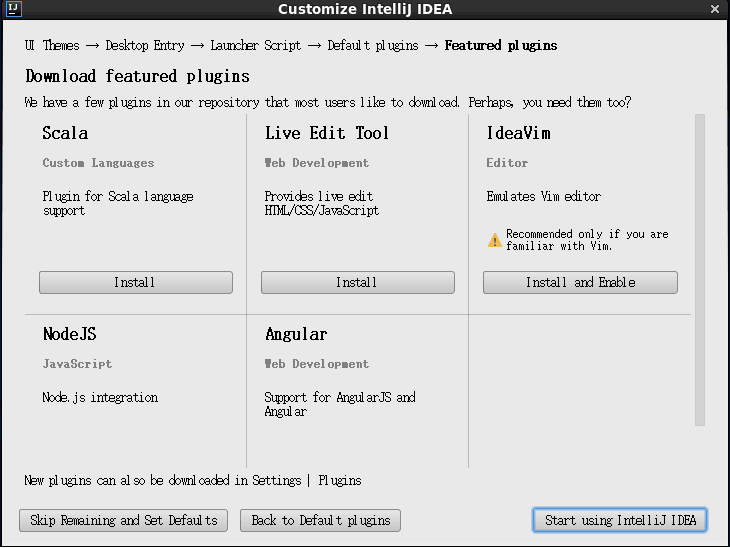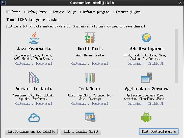 15、点击Next:Default plugins.这一步主要是一些个性化设置