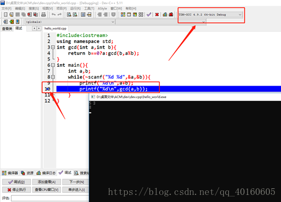 注意右上角改成debug的编译器,然后就可以单步调试了