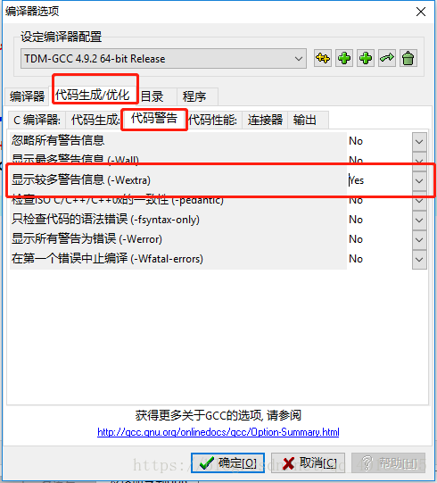 按照图片上的,把显示较多警告信息改为Yes就可以了