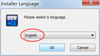 Dev C++ 支持多国语言,包括简体中文,但是要等到安装完成以后才能设置,在安装过程中不能使用简体中文,所以这里我们选择英文(English)。
