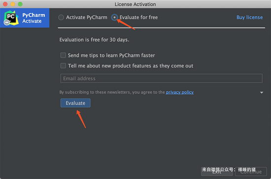 如果你是刚下载的pycharm,则需要点击激活窗口的“Evaluate for free”免费试用,然后再创建一个空项目,这样就可以进入到pycharm的工作页面
