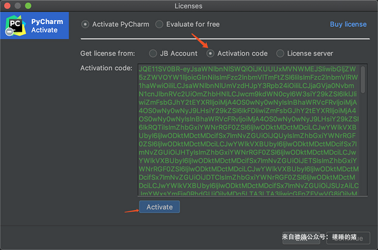 3)如果服务器激活方式无法激活,还可以选择Activation code方式激活,复制下面激活码即可