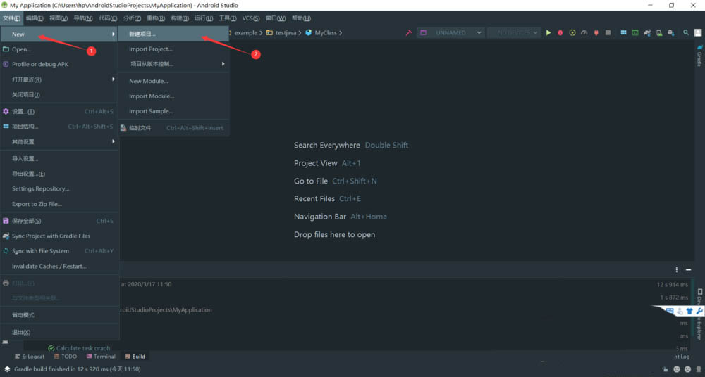 打开Android Studio;文件-new-创建新项目;选择empty activity;设置项目信息;创建好了,安装。