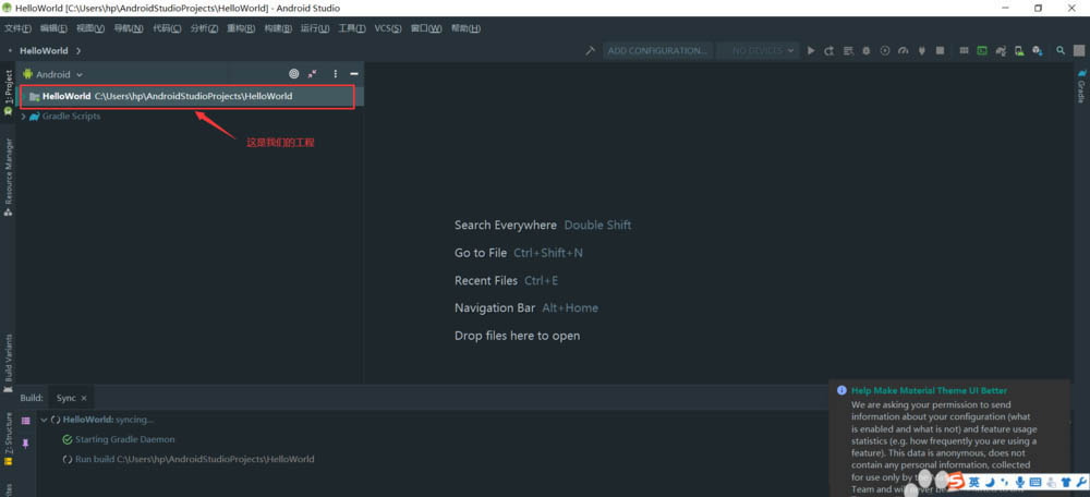 5、我们的项目就创建好了,在左侧项目栏可以看到我们的项目。