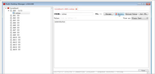 6、然后你可以双击那个Key(nihao),它会在右侧的部分将Key 与 Value都展示出来,并且对Key有一些相应的操作;