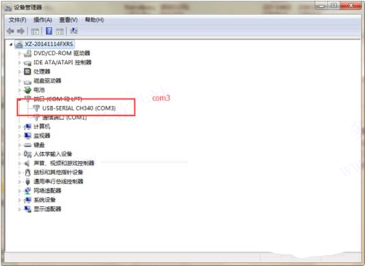 4、检查:找到电脑的”设备管理器“ 在电脑的“设备管理器”中查看是否有相应的硬件连接。 如果没有我们往往要下载ch340的硬件驱动,可以百度搜索一下,有很多的这样的驱动,任意下载一个安装后,在连接上就可以了。 如果正确连接应该有一下的结果。