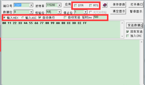2、设置“输入HEX”,则用户输入数据看作16进制字节,不区分大小写,接收的会显示为16进制HEX格式;如果设置“输入ASC“则用户输入数据看作ASCII字符,接收的也会显示为ASCII字符;