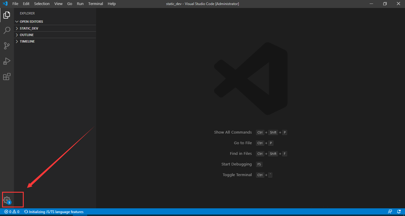 打开 VSCode 编辑器后,点击左下角“设置”按钮。