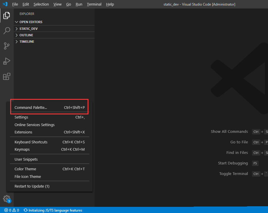 也可以使用快捷键“Ctrl + Shift + P”打开命令面板