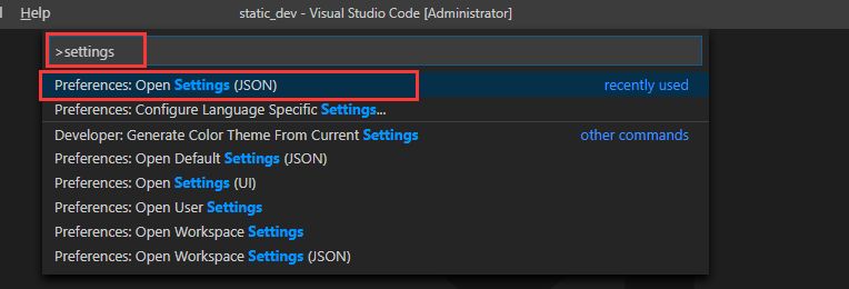 在选择框的下拉列表中选择“Preferences: Open Settings (JSON)”