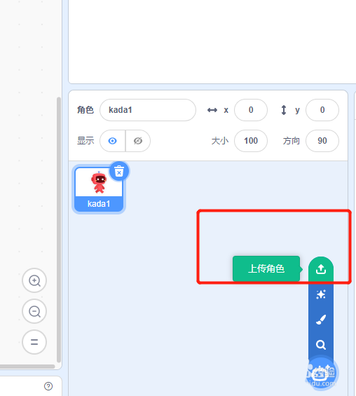 3、然后打开我们自己需要编辑的scratch软件,在角色画面,点击上传角色。