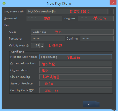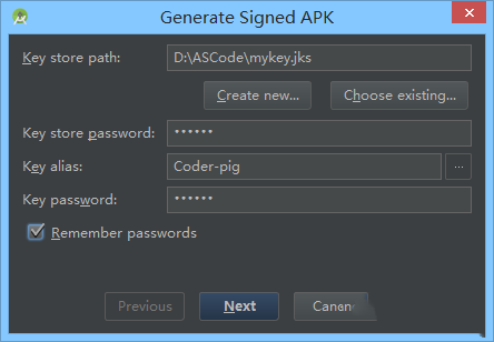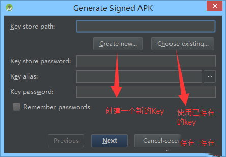弹出窗口,如果没有key,就创建一个,有的话就选择存在的Key,如果你是第一次打包。都是没有的