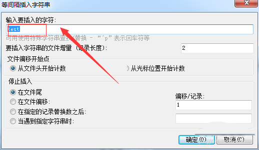 4、进入到了等间隔插入字符串 界面中,输入要的插入的字符