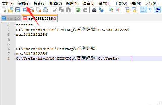 3、点击菜单中的 编辑 菜单