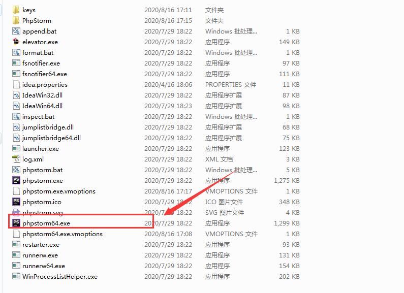 2、由于小编提供的版本是永久授权,配置随身携带bin目录的,而软件主程序位置在bin\phpstorm64.exe;
