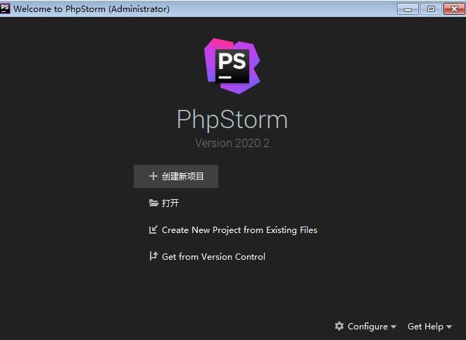 4、因为该版本是集破解补丁与一体的便携版,到这一步就能直接使用了,但这时会发现主界面是全英文的,那么phpstorm2020.2怎么设置中文语言呢?