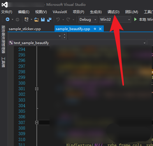 1、打开VS2015软件,在菜单栏选择【调试】选项