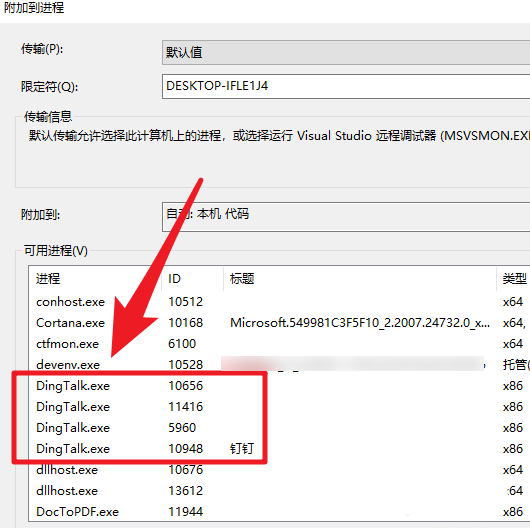 3、在弹出的提示框中,选择我们调用我们动态库的程序,注意如果有多个相同的选择最上面那个