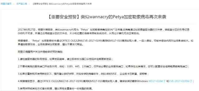 6月28日凌晨,阿里云对外发布了公告预警。