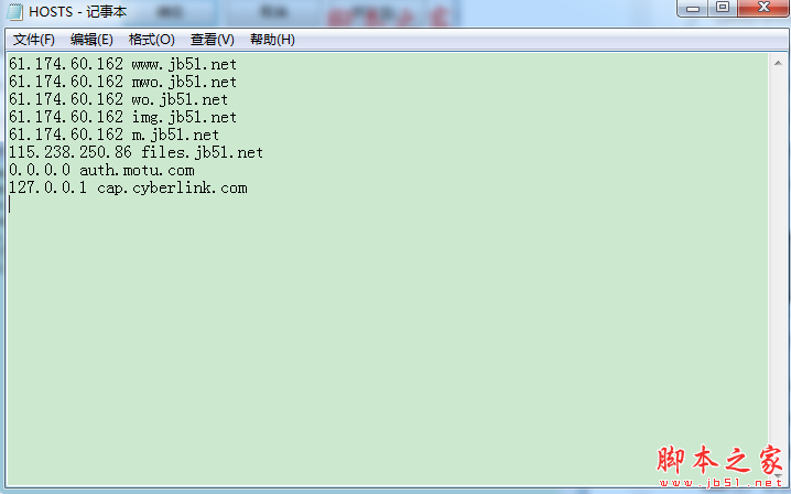 2.打开host,在里面输入"127.0.0.1 cap.cyberlink.com",保存