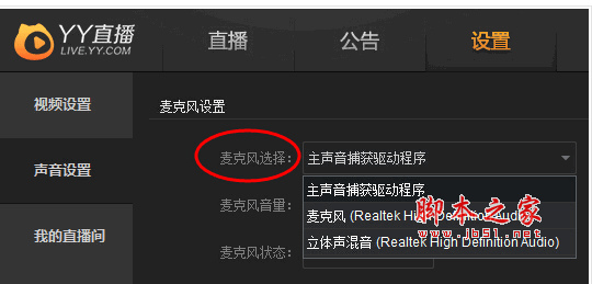 答:1)请确认你的麦克风能够被电脑识别,如果麦克风选择的选项里只有“主声音捕获驱动程序”,说明你的麦克风还未被识别