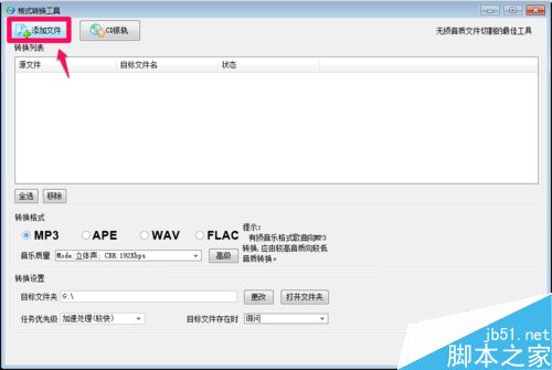 在打开的格式转换工具窗口,我们点击:添加文件;