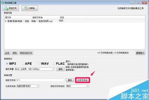 转换完成,我们点击:打开文件夹,查看转换的歌曲;