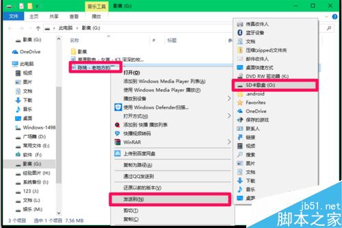 右键点击歌曲《老地方的雨》,在右键菜单中点击:发送到 - SD卡歌盘(O);