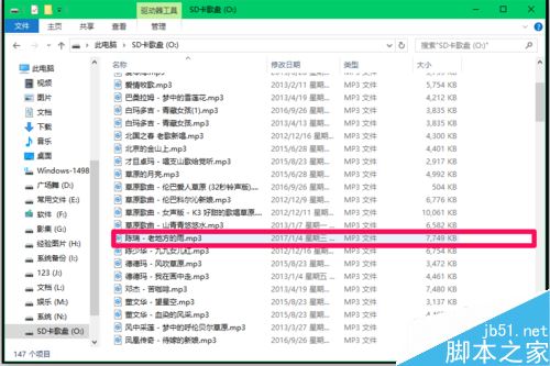 打开SD卡歌盘,我们就可以看到歌曲《老地方的雨》已储存在SD卡歌盘中了。