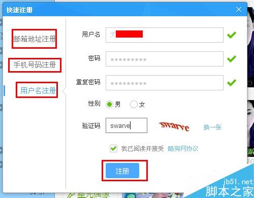有三种注册模式——邮箱、手机及账号。为方便我这里选择账号注册: