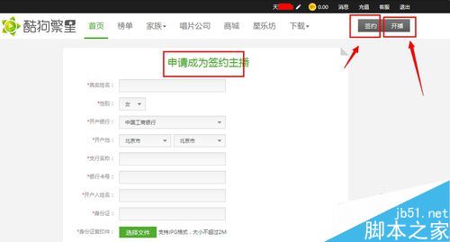 在打开在页面中,填写资料申请签约,签约后就可以开播了: