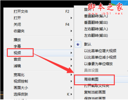3、接着我们用快捷键“Ctrl+G”打开“高级截图”功能,或者也可以用鼠标右键点击视频画面,在弹出的窗口中打开“视频”—“高级截图”;