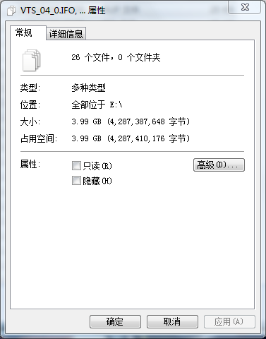 放入光盘,自动会启动Windows media player软件播放,这是后,点击菜单中的“文件”下面的“属性”,可以看到下面这个面板。特别是位置的那部分,暴露了视频的路径:“F:\video_te”。对,视频就在这个目录。